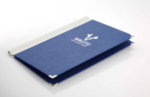 Seit 40 Jahren steht unsere familiengeführte Manufaktur für hochwertige Gastronomiekarten – von Speisekarten über Klemmbretter bis hin zu stilvollen Hotelmappen.