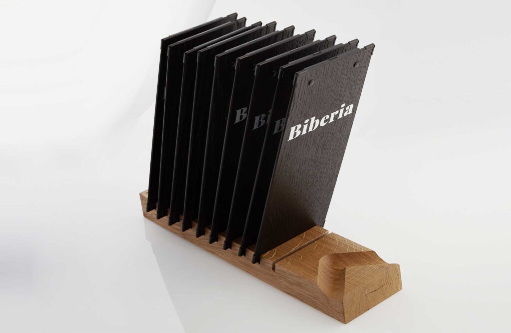 Aufsteller für Menuboards. Eiche massiv. 45 cm Länge / 10 cm Breite / 10 Schlitze Einzeln erhältlich. Gebrauch: Zur Aufbewahrung Ihrer Menuboards. Der Kellner kann dank der inkludierten Handhalterung den Aufsteller Ihren Gästen reichen. Soziale Distanz ist damit gewährleistet.