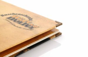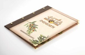 Hochmoos Speisekarte aus Karton mit Metallschiene