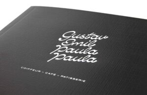 Gustav Speisekarte aus Karton mit Leinenstruktur