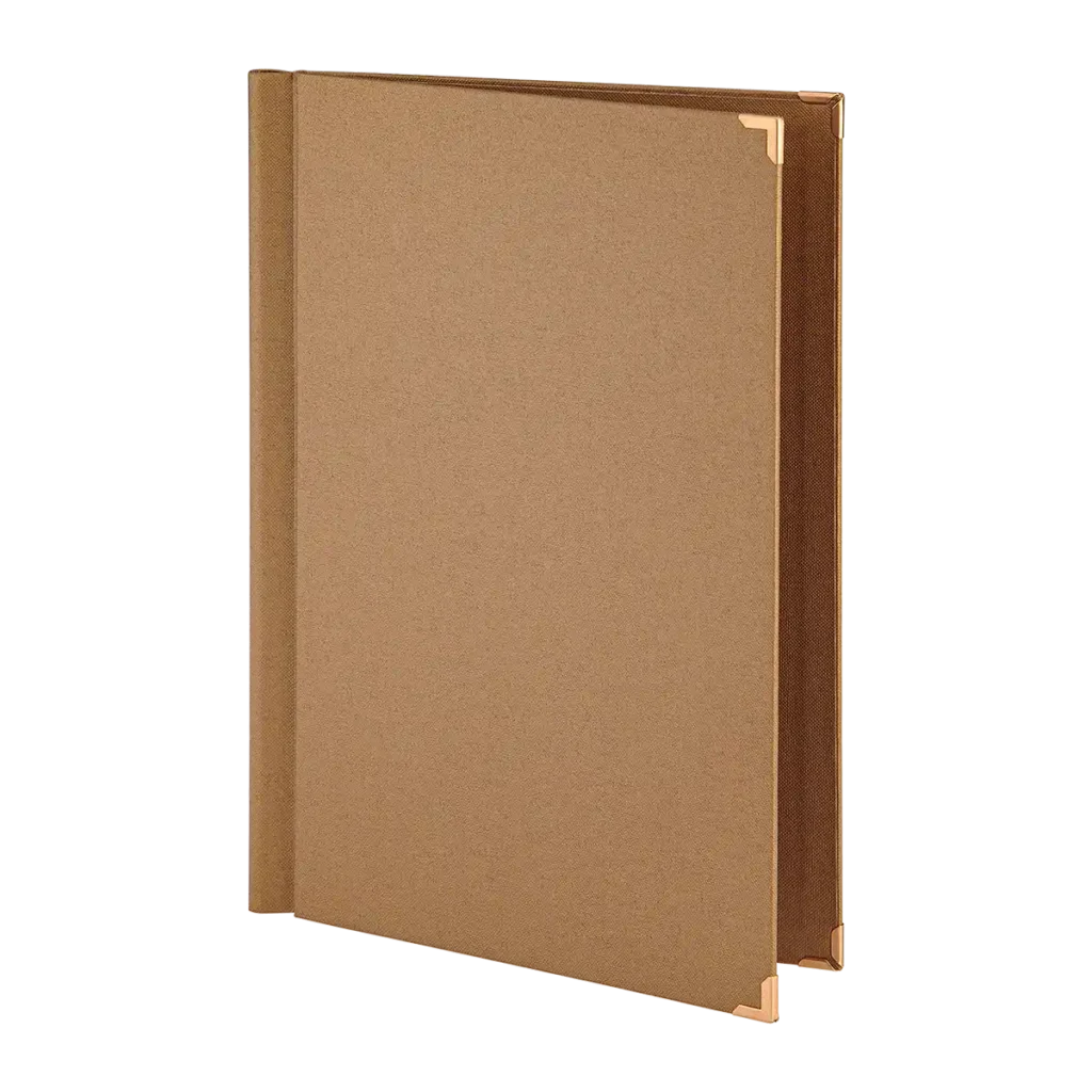 Versatile menu with a characteristic Medici back with four book screws in standard hole.