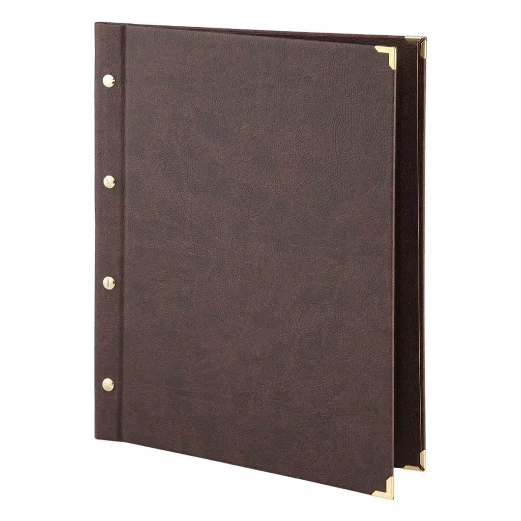 Vielseitige Speisekarte mit charakteristischem Rücken mit vier Buchschrauben in Normlochung.