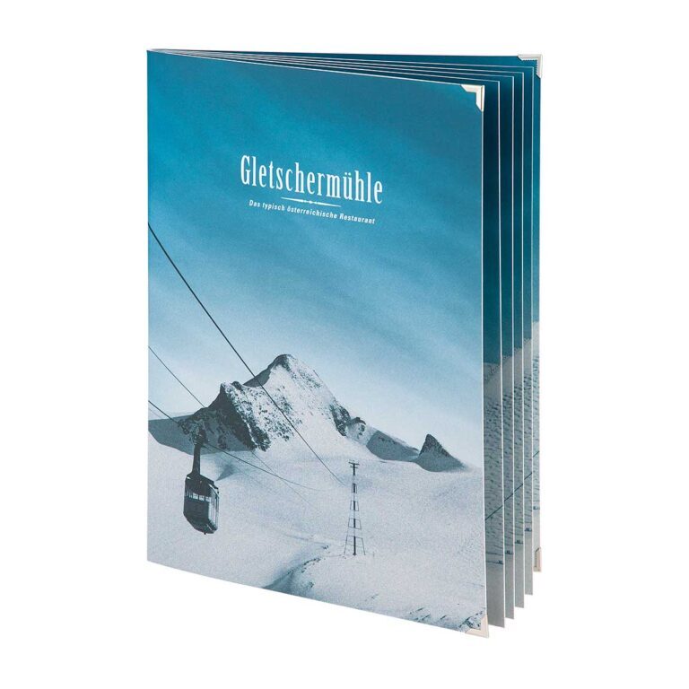 Gletschermühle Speisekarte mit individuellem Druckmotiv