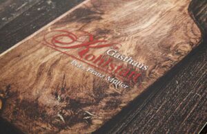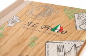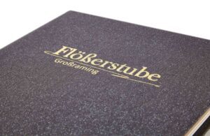 Flößerstube Speisekarte mit individuellem Printmotiv innen