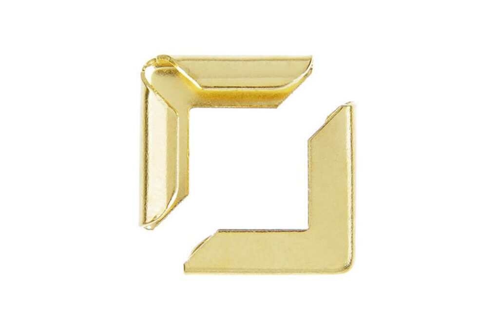 Schutzecken für Speisekarten in der Metalliclegierung Gold. Schenkel: ca. 16 x 16 mm Füllhöhe: ca. 3 mm Abgepackt zu je 40 Stück. Einfaches Anbringen der Ecken an Ihre Speise- oder Getränkekarte. Stecken Sie die Ecke an die Karte. Durch einen geübten Klopfer mit dem Hammer ist die Ecke befestigt. Viel Glück und Spaß. Bei Unklarheiten und Fragen kontaktieren Sie uns einfach per E-Mail oder rufen Sie uns an.