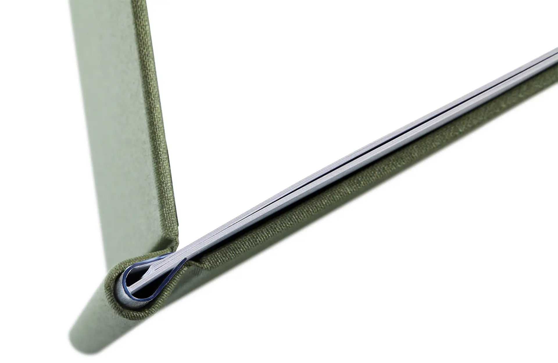 Besteht im Inneren aus einer durchsichtigen robusten Kunststoffschiene, überzogen mit Medici-Buchbinderleinen.